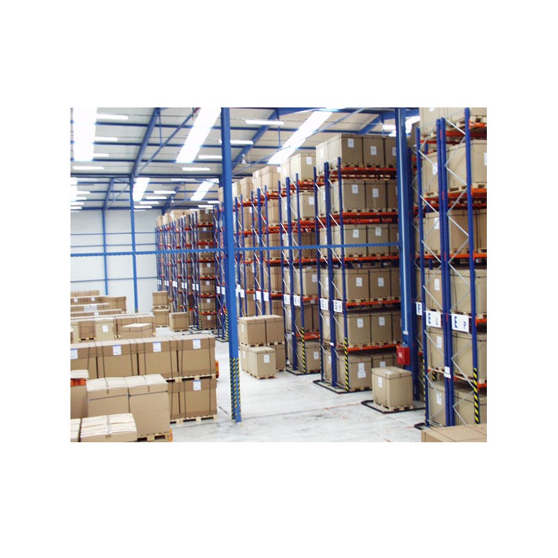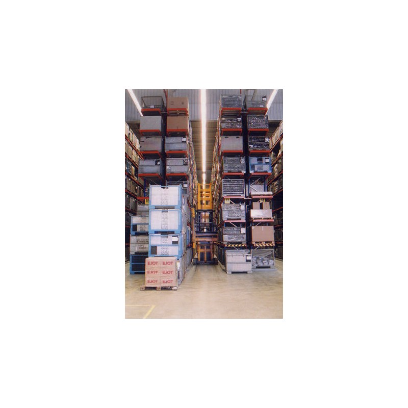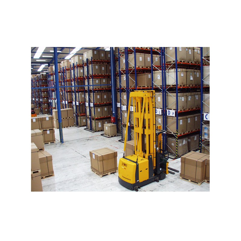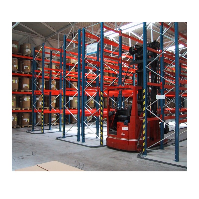 Afin de guider les chariots élévateurs dans les allées étroites des grands entrepôts, on pose des rails de guidages ancrés au sol.