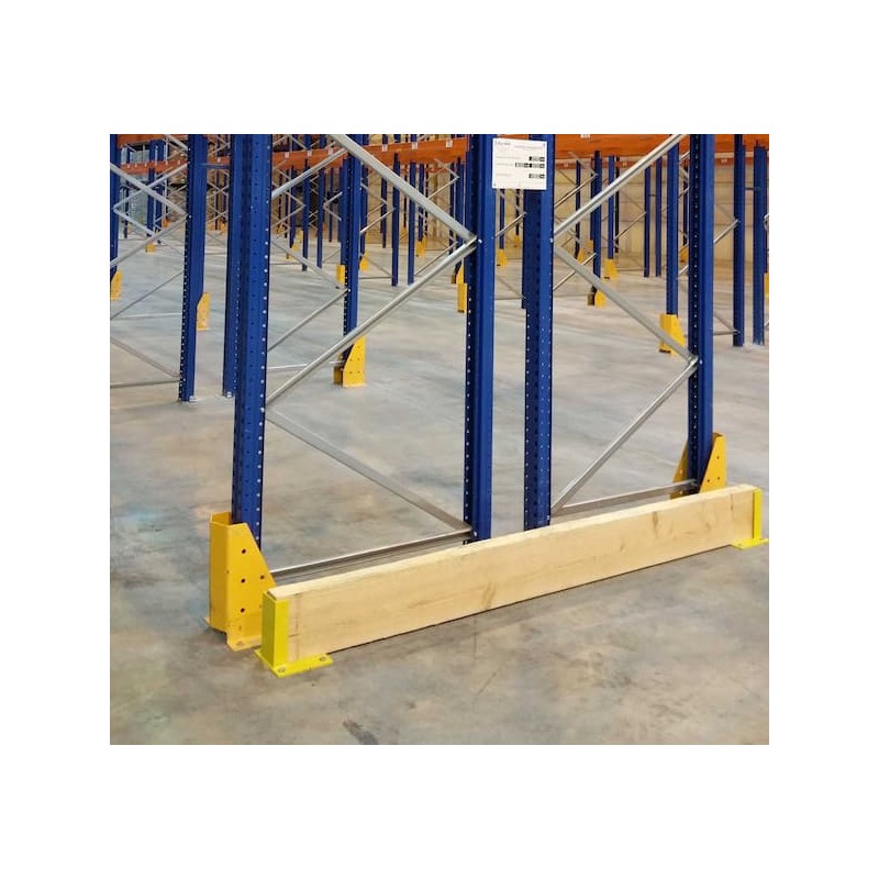 Afin de protéger vos allées à coté de vos racks à palettes vous pouvez installer des protection avec supports pour bastaings. Ces protections sont composées de 2 supports en U aux extrémités d'un ou deux bastaing selon votre configuration.