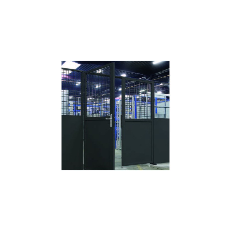 Porte coulissante pour cloison de sécurité. La porte coulissante permet un encombrement réduit à l'essentiel pour garantir un espace maximal à votre espace grillagé.