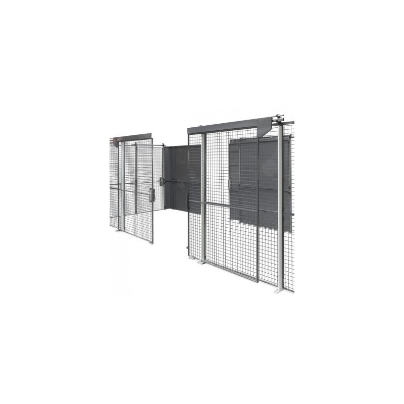 Porte coulissante pour cloison de sécurité. Les portes coulissantes double permettent un encombrement réduit à l'essentiel pour garantir un espace maximal à votre espace grillagé.
