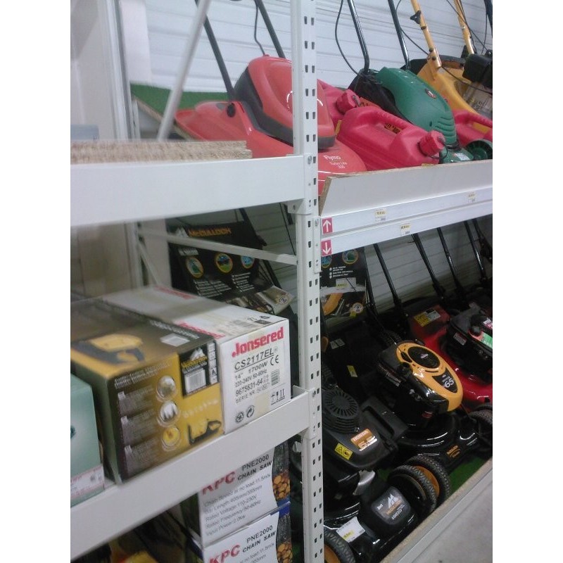 Montant avec perforation H pour fixation accessoires. Existe en quatre sections 30x30, 60, 80 et 110mm. Hauteur de 1200 à 3000mm - Extension des montants de 100 à 1000mm. pas de réglage de 50mm. Accessoires : barres de contreventement, bouchons plastiques, Pieds verins pour régler la hauteur, Cornière de fixation murale, Piètements, plinthes. Supports de tablettes de 200 à 770mm de profondeur. Fonds lisses ou perforés. Tablettes tôlées robustes fortes capacités de charge.