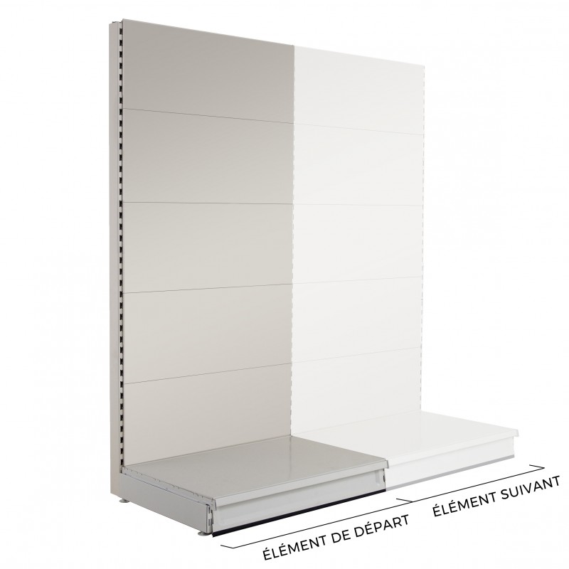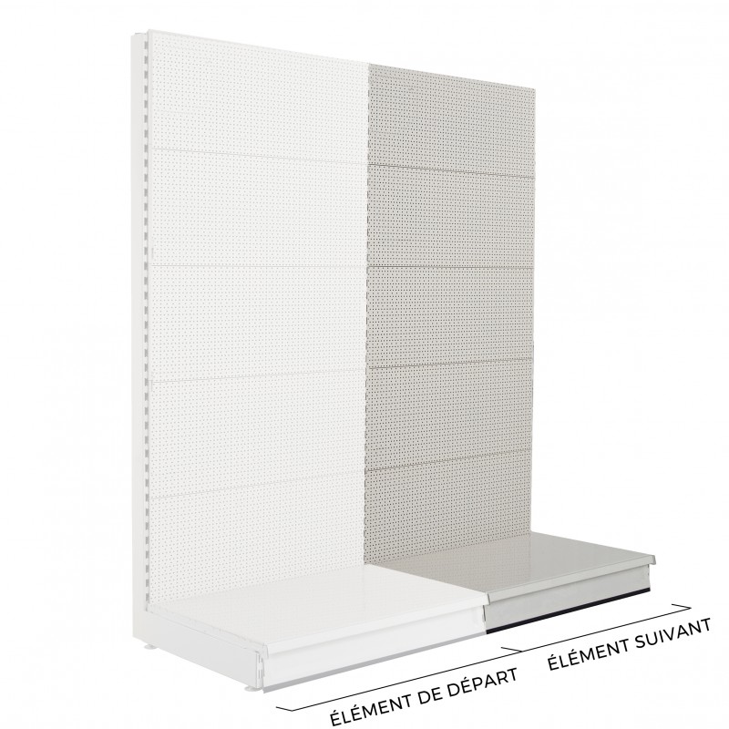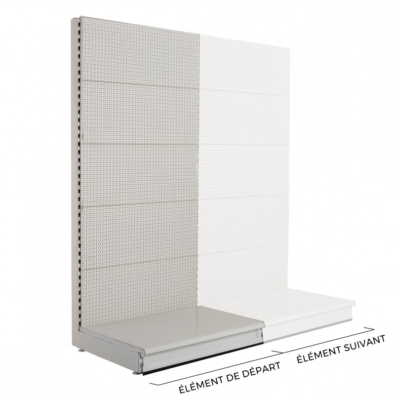 En simple face, vous pourrez monter facilement les gondoles dont vous avez besoin : avec fond perforé ou fond plein et tablettes de taille optimale. Plusieurs hauteurs et profondeurs sont disponibles. Coloris Blanc Cassé RAL 9001 ou Gris Anthracite RAL 7016