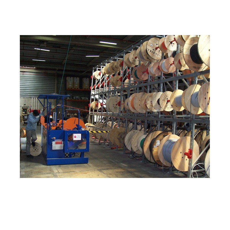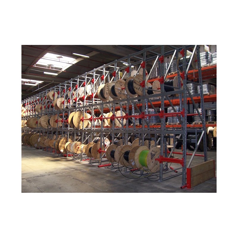 Afin de stocker efficacement des bobines de câbles, on peut équiper des FLIRACK de tourets, qui permettent de stocker en hauteur des câbles et de les dérouler par le bas sans risque pour l'opérateur.
