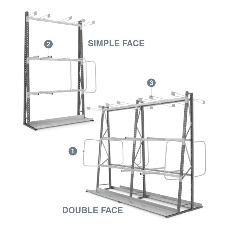 Pour le stockage de charges longues avec un encombrement au sol minimal, optez pour le rayonnage vertical Epsivol double faces. Une butée au sol empêche le glissement des tubes, bastaings ou autres objets de grande taille. Pour un aménagement personnalisé, vous pouvez également empiler ces rayonnages sur des étagères Epsivol classiques.