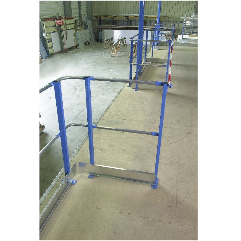 Le garde-corps Rayonor répond aux normes standards de sécurité dans les lieux de travail. Il a été testé et protège l'opérateur par deux tubes métalliques et une plinthe.