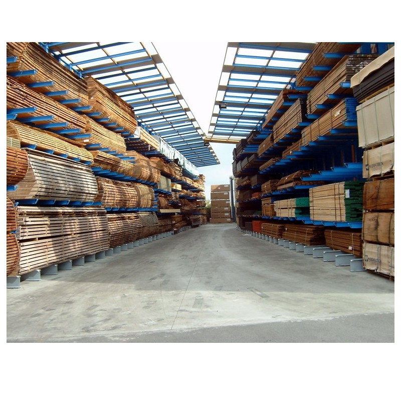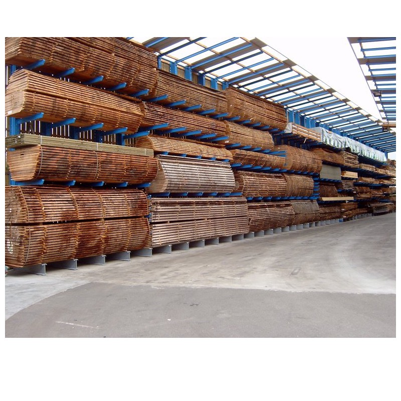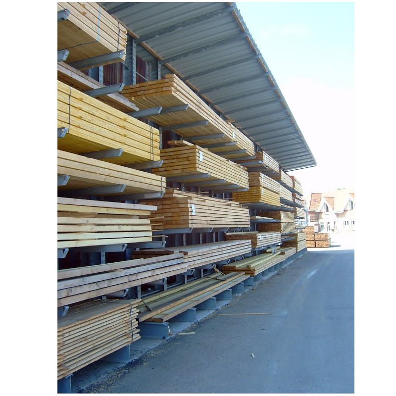 Afin de protéger les matériaux stockés en extérieur (poutres, bastaings, tubes…), les rayonnages cantilever peuvent être équipés de auvents fixés sur les colonnes.