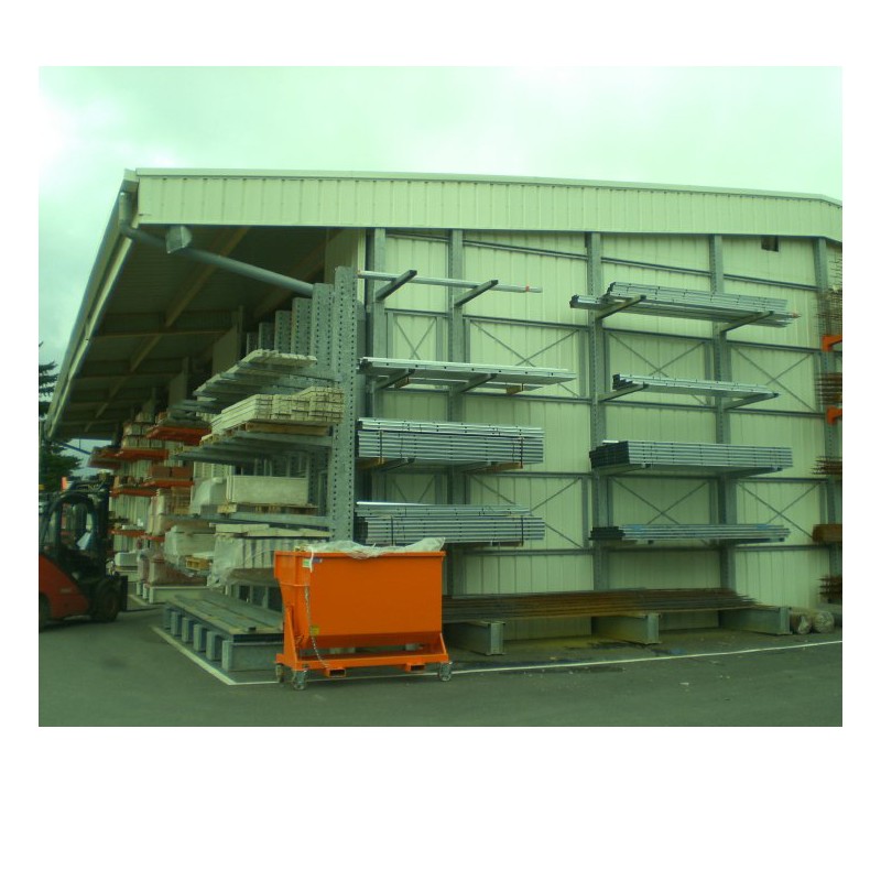 Lorsque les colonnes des rayonnages cantilever supportent la toiture et le bardage du bâtiment, on parle de bâtiment autoportant.