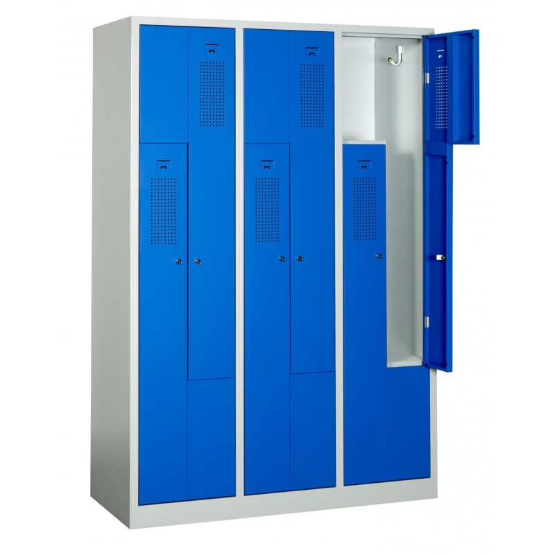 Ces vestiaires en L sont la penderie idéale pour l'industrie, les collectivités, les écoles, les centres sportifs... Un porte-manteau et un crochet pour couvre-chef sont intégrés au placard. Les vestiaires se ferment par une serrure simple.