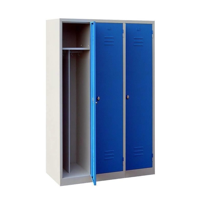 Pour l'équipement de vos locaux en industrie salissante, ces vestiaires fonctionnels sont robustes, aérés et sécurisés. Chaque casier se compose d'une tablette supérieure et d'une penderie divisée en deux pour la séparation des vêtements de ville et de travail. Les portes sont équipées de butées en caoutchouc pour une fermeture silencieuse.